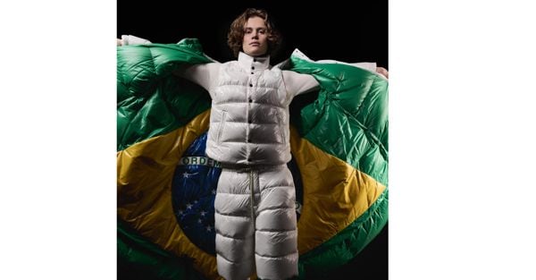 L’atleta brasiliano Lucas Pinheiro Braathen con la divisa creata da Moncler per il team che partecipa a Milano-Cortina 2026