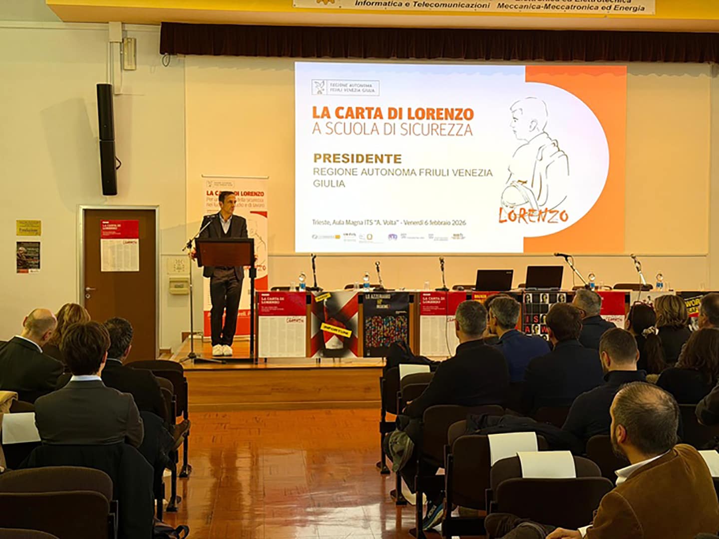 L’iniziativa è stata organizzata a inizio febbraio nell’aula magna dell’Istituto tecnico statale “Alessandro Volta” del capoluogo regionale in occasione del terzo anniversario della Carta di Lorenzo, il manifesto sottoscritto nel 2023 dalla famiglia di Lorenzo Parelli e dall’Amministrazione regionale assieme a scuole, imprese, sindacati e altre istituzioni, tra le quali Confindustria Udine, per sottolineare l’impegno comune alla creazione di una rete di formazione e lavoro più sicura, promuovendo una cultura della sicurezza sul lavoro diffusa e consapevole.
